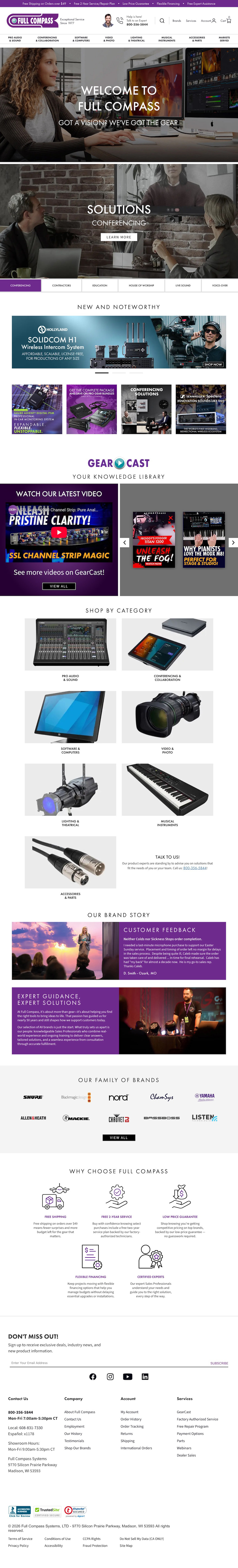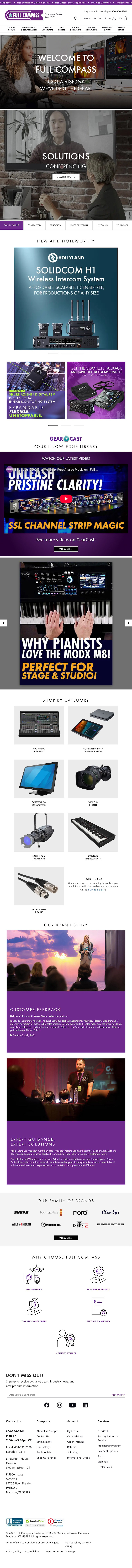 Objective: The FCS marketing department was tasked with redesigning the homepage to more accurately convey the new, technology focused direction of the company and to establish Full Compass, not only as the go-to source for professional gear but also as a content resource for it's customers.